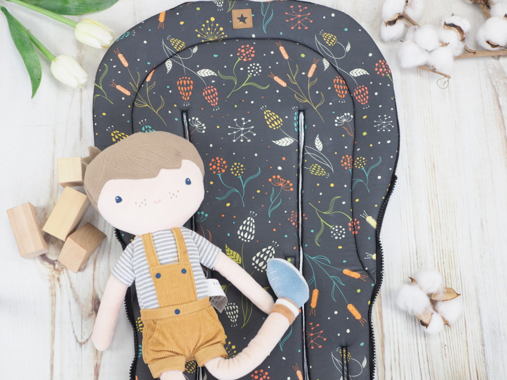 Podložka do kočárku s postranním zipem je oboustranná – jedna strana je bavlněná, která je skvělá v létě a teplejších dnech. Na druhé straně je fleece s protižmolkovou úpravou, který hřeje a je skvělý do zimního období. 1 cm molitanová výplň nejen zpříjemní posezení v kočárku, ale odizoluje bavlněnou stranu od té hřejivé a tak se nemusíte bát, že by podložka hřála.