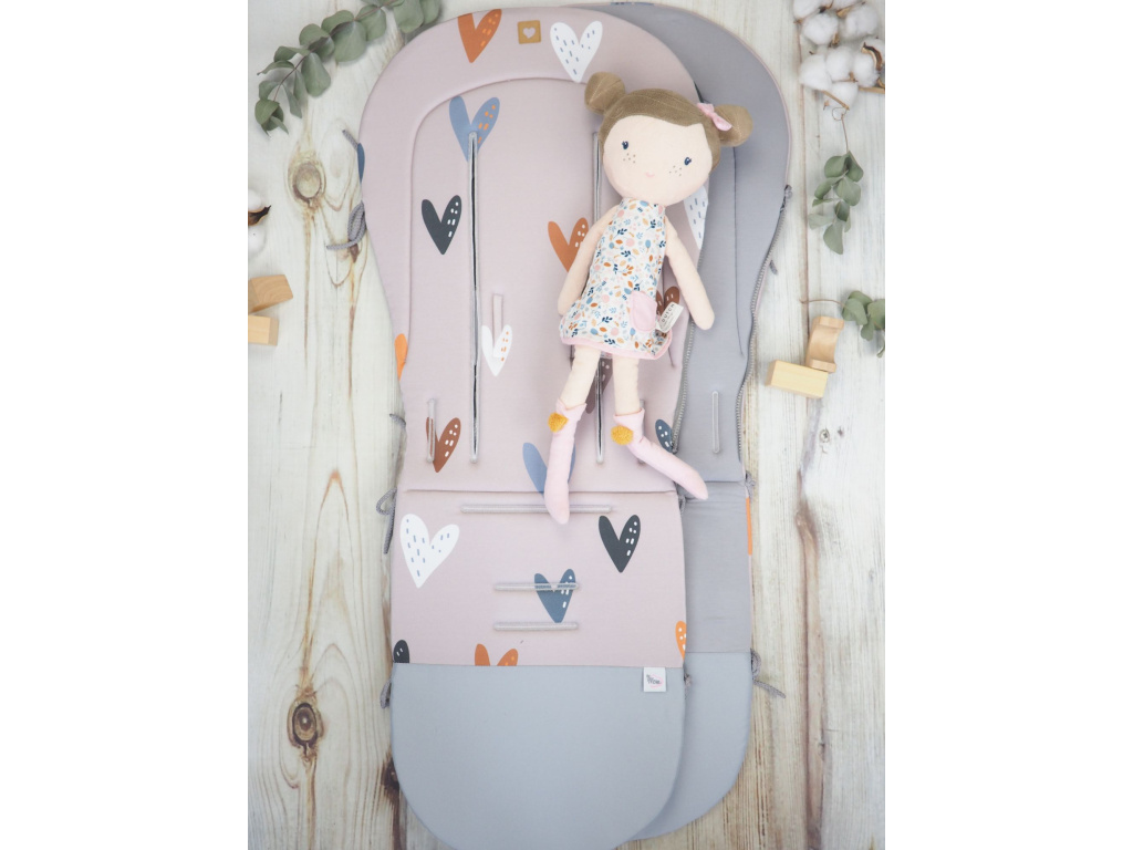 2. jakost | Podložka do kočárku prodloužená (Hearts, šedý bambus)