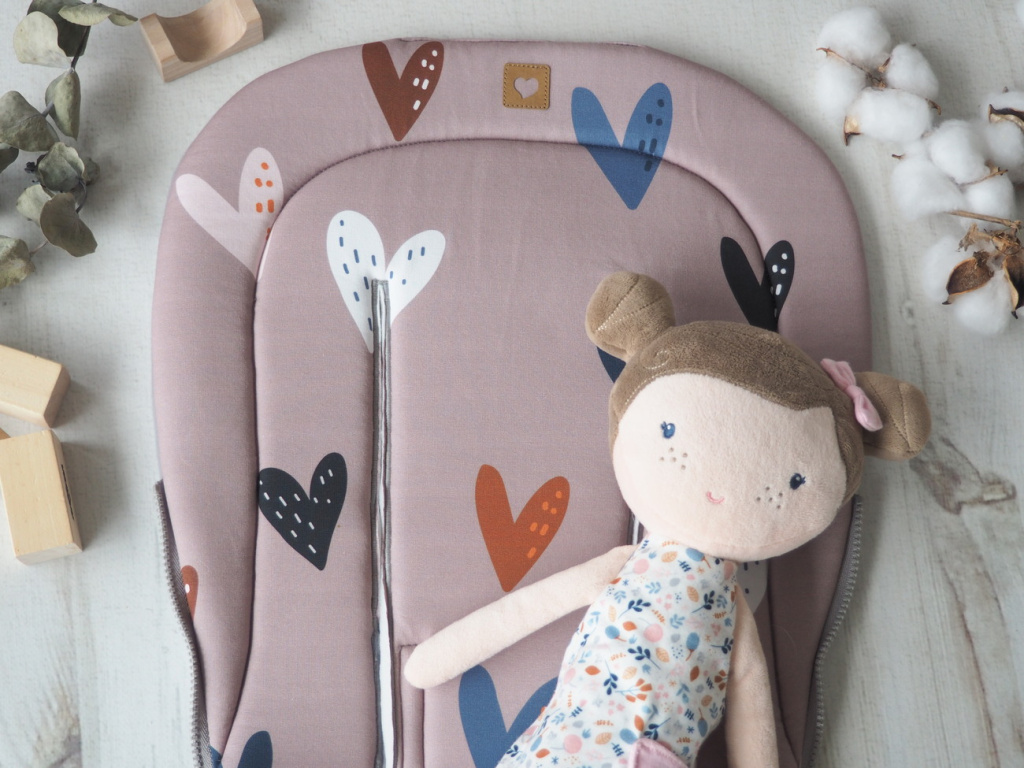 Podložka má uprostřed šnůrky k uchycení ke kočárku na několika místech a navíc ve spodní části gumu, což zajišťuje, že podložka nesjíždí a drží na místě.