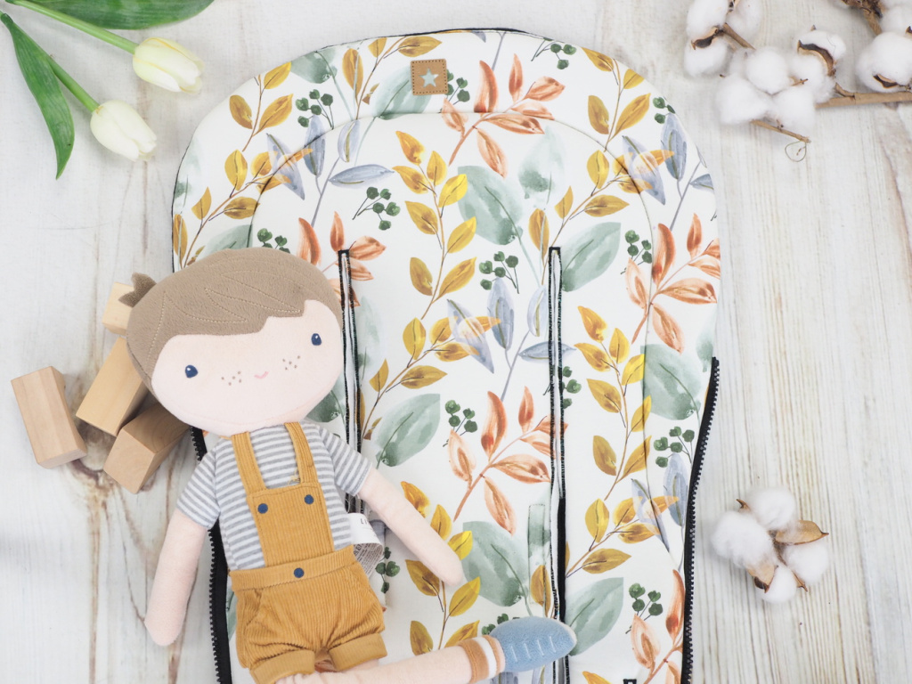 2. jakost | Podložka do kočárku prodloužená (Leaves, černý fleece)