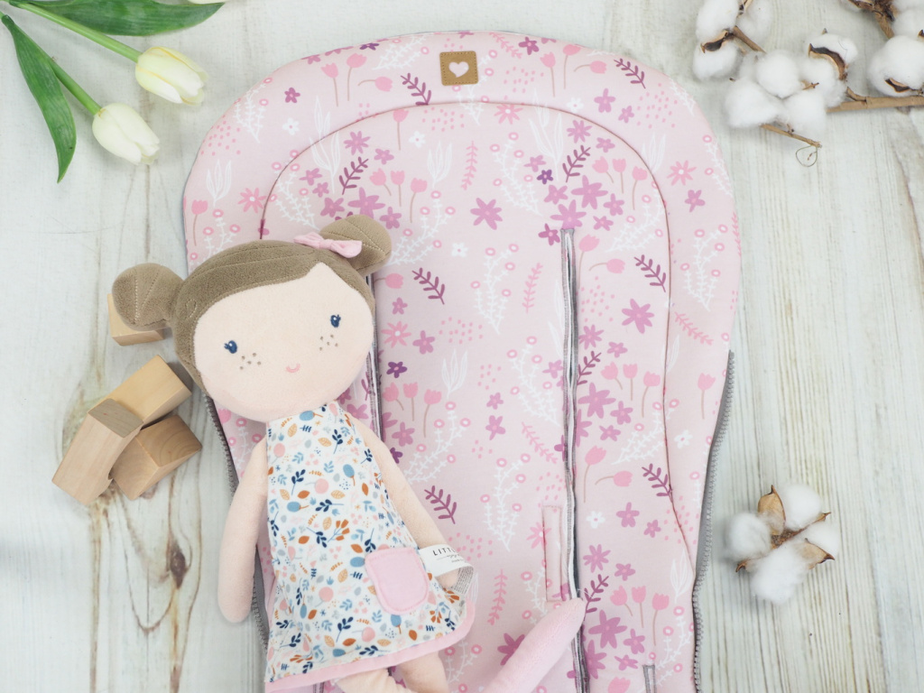 2. jakost | Podložka do kočárku prodloužená (Petite Flora, šedý fleece)