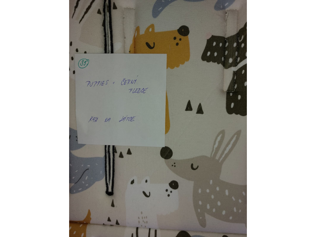 2. jakost | Podložka do kočárku prodloužená (Puppies, černý fleece)