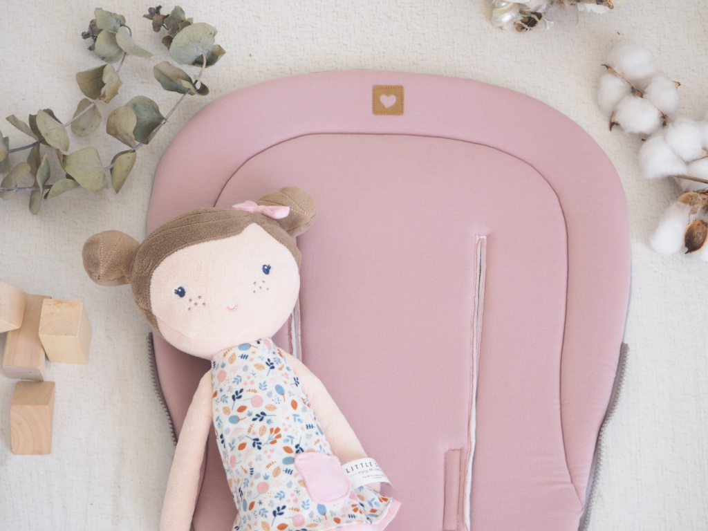 Podložka má uprostřed šnůrky k uchycení ke kočárku na několika místech a navíc ve spodní části gumu, což zajišťuje, že podložka nesjíždí a drží na místě.