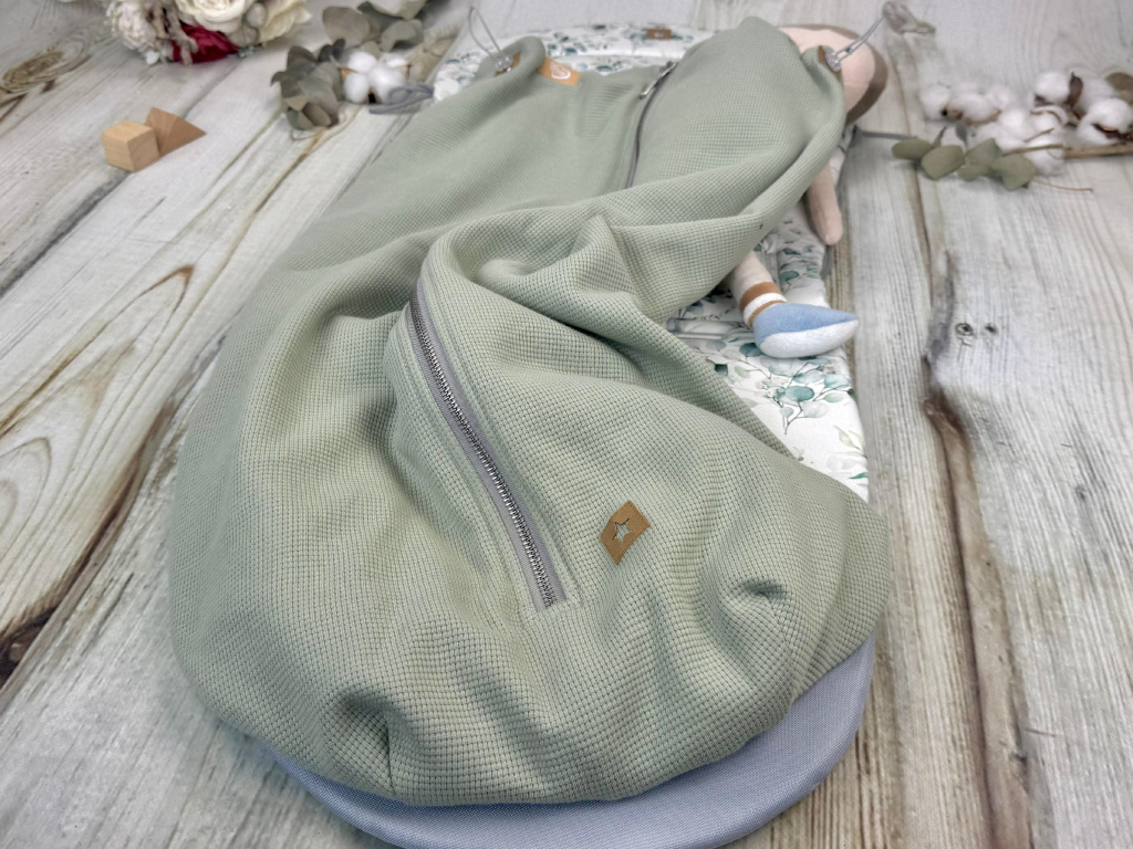 Deka nepadací vaflová (dusty green, šedý fleece)