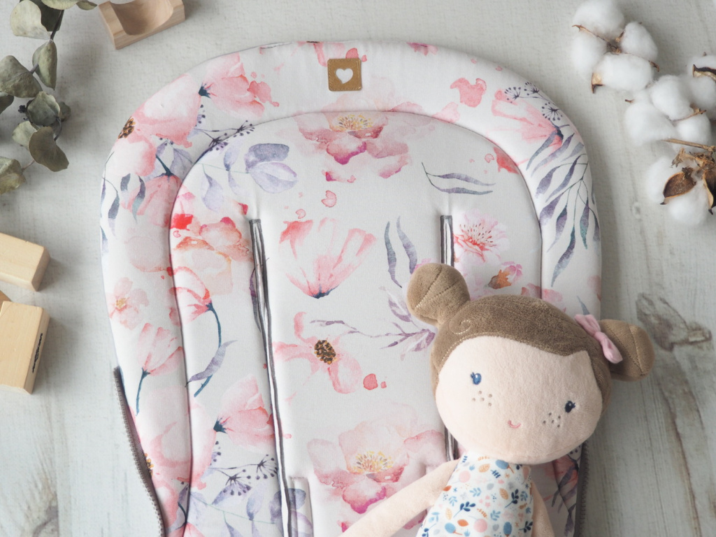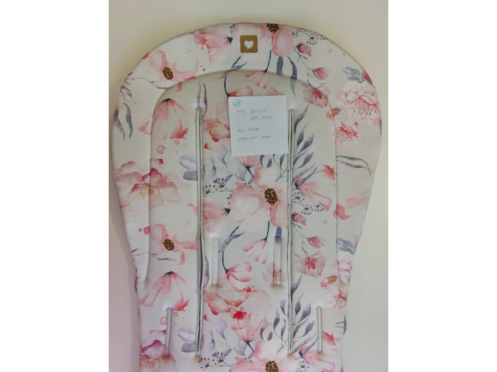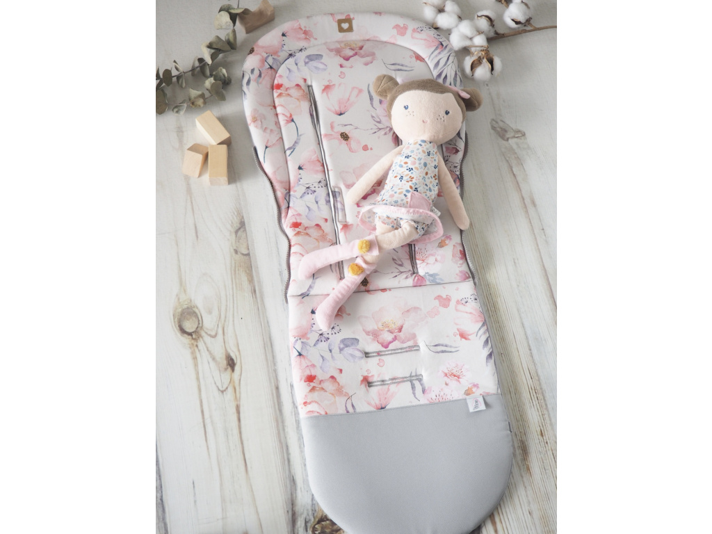 2. jakost | Podložka do kočárku prodloužená (Apple Blossoms, šedý fleece)