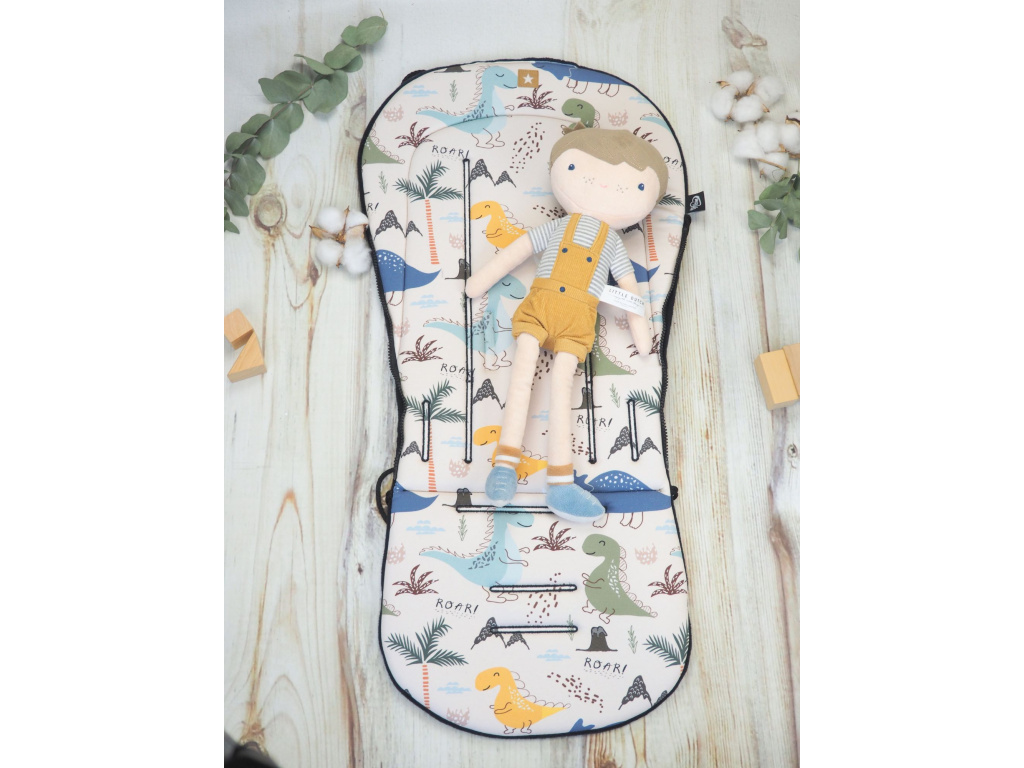 Podložka s postranním zipem je oboustranná, a má druhou stranu s fleece – podložka tak krásně sedí, neklouže a v chladnějším období můžete otočit na teplejší hřejivější stranu. Avšak nemusíte se bát, že by podložka kvůli tomu celkově hřála. 1 cm molitanová výplň nejen zpříjemní posezení v kočárku, ale právě odizoluje bavlněnou stranu od té hřejivé.
