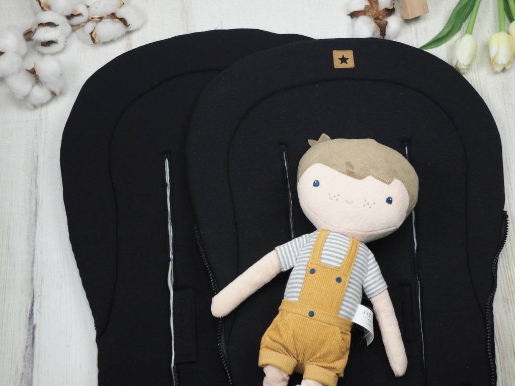 Podložka do kočárku s postranním zipem je oboustranná a 1 cm molitanová výplň nejen zpříjemní posezení v kočárku.