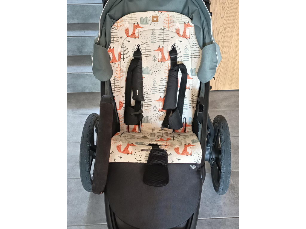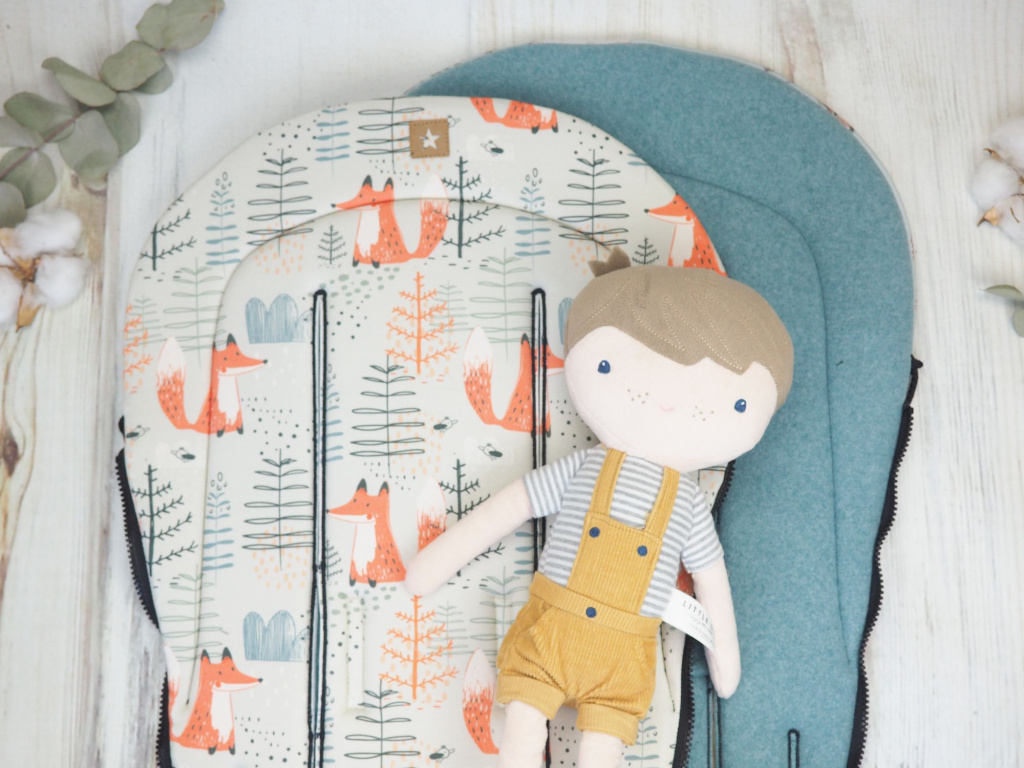 Podložka do kočárku prodloužená (Foxes, sea green fleece)
