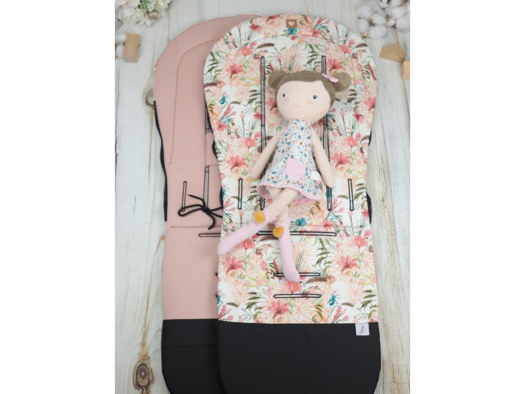 Podložka do kočárku prodloužená (Summer Medow, pastel pink bambus)