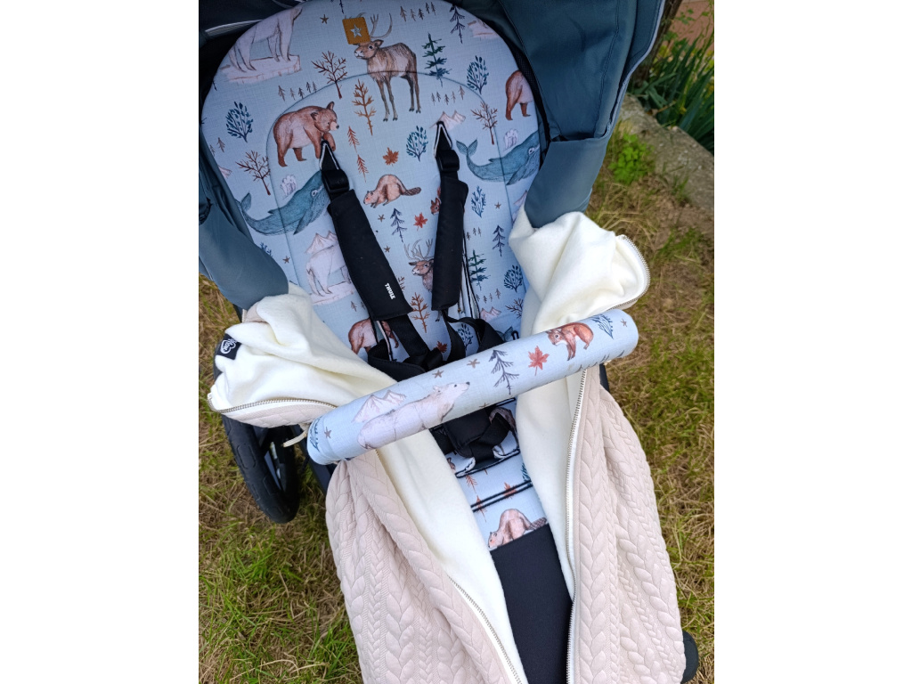 Podložka do kočárku prodloužená (Wild animals, sea green bambus)
