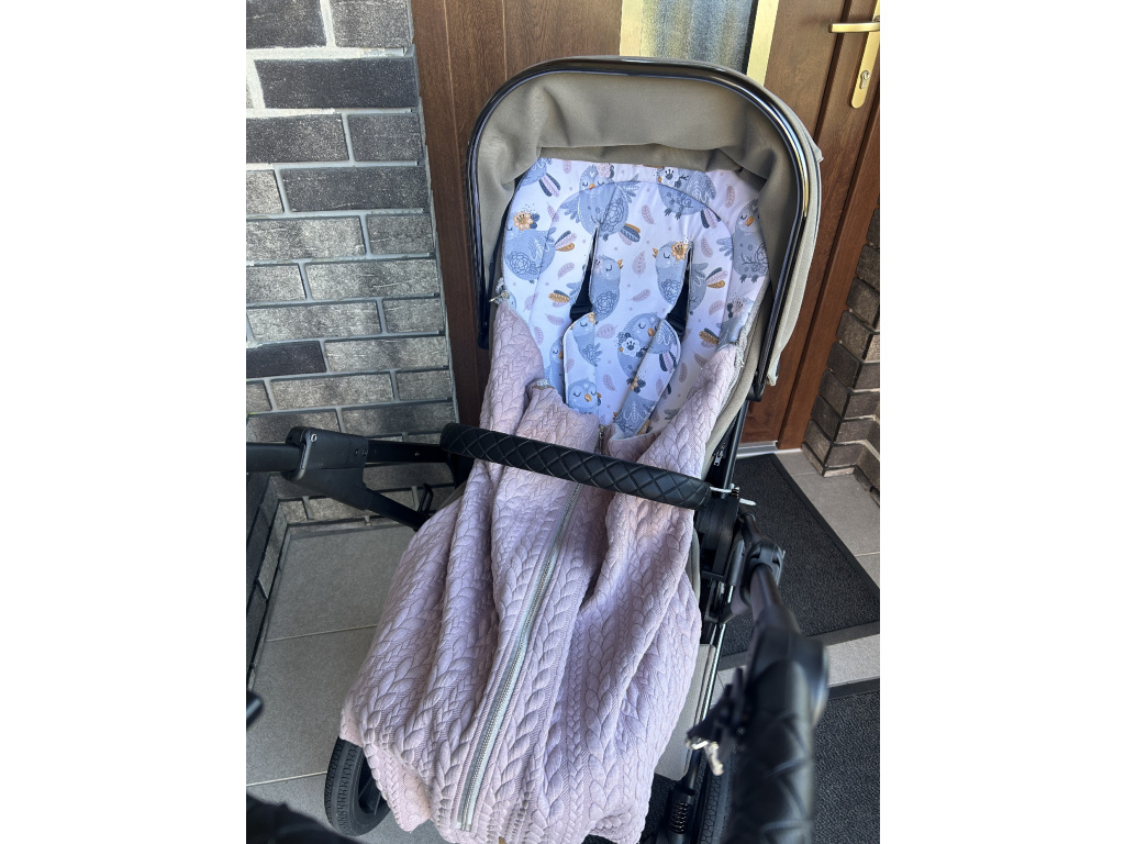 Podložka má šnůrky na uvázání ke kočárku a ve spodní části také gumu na zachycení, díky tomu podložka neklouže.