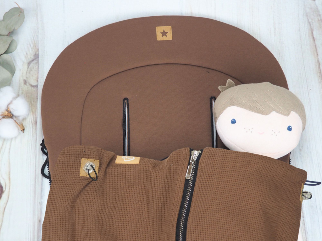 PODLOŽKA DO KOČÁRKU s postranním zipem je oboustranná: z jedné strany je barevný bavlněný úplet a z druhé strany je hřejivý fleece ze 100% bavlny. Podložku tak využijete oboustranně a po celé roční období. Ve spodní části podložky je nepromokavá a omyvatelná část na nožičky.