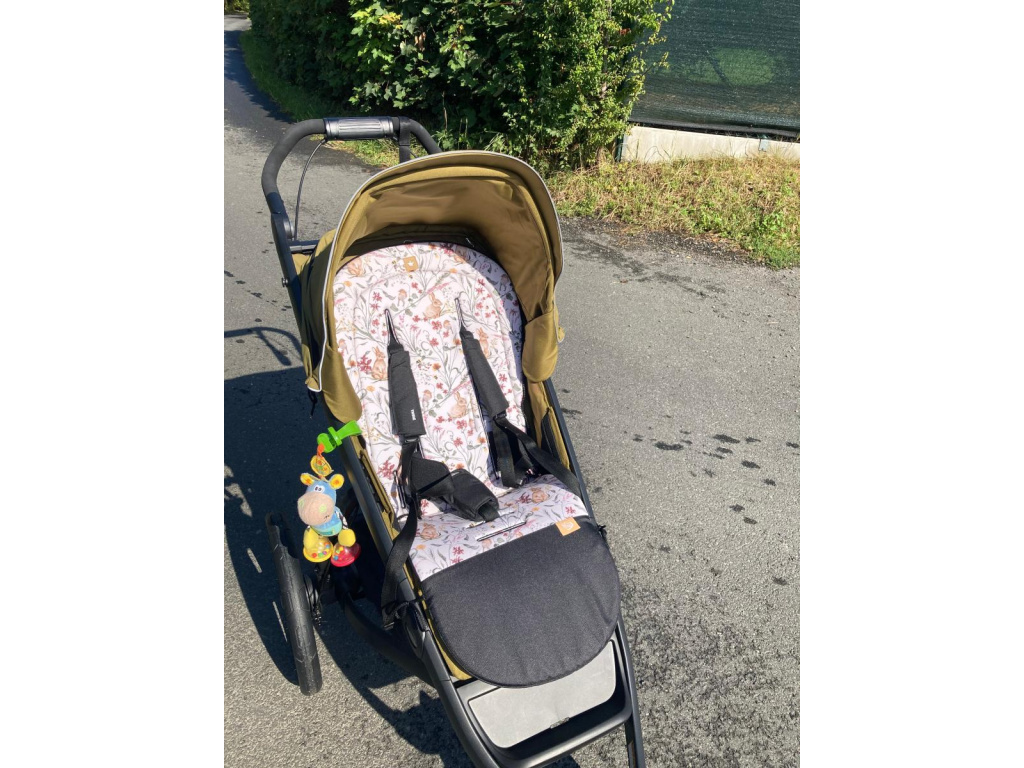 Podložka má na několika místech na boku i vzadu šnůrky na uvázání ke kočárku a ve spodní části také gumu na zachycení, díky tomu podložka opravdu neklouže. Střih podložky je speciálně navržen tak, aby sedl do naprosté většiny kočárků na trhu a díky prošívání se vejde i do užších kočárků!