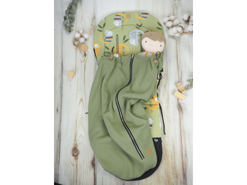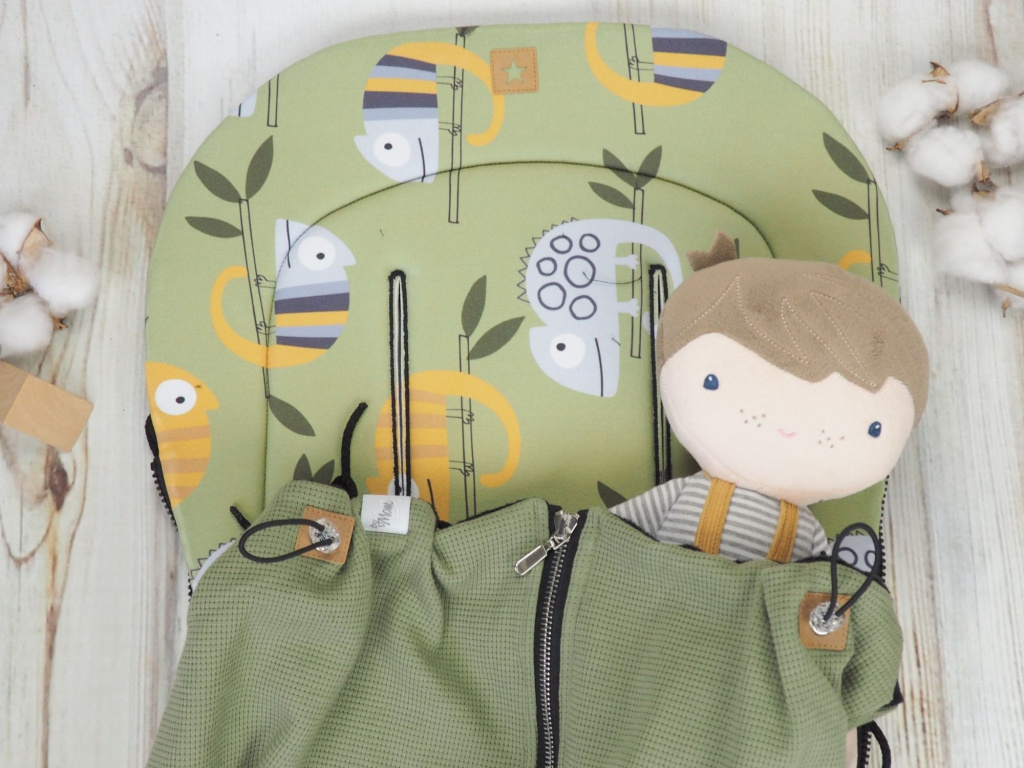 NEPADACÍ DEKA spolu s podložkou vytváří dojem fusáčku, je tvarovaná, zabalí a zahřeje nožičky, deka s důmyslným systém připnutí k podložce nikdy nespadne. A největší kouzlo na této dece? Zip uprostřed, díky kterému bude manipulace s prckem v kočárku naprostá hračka.